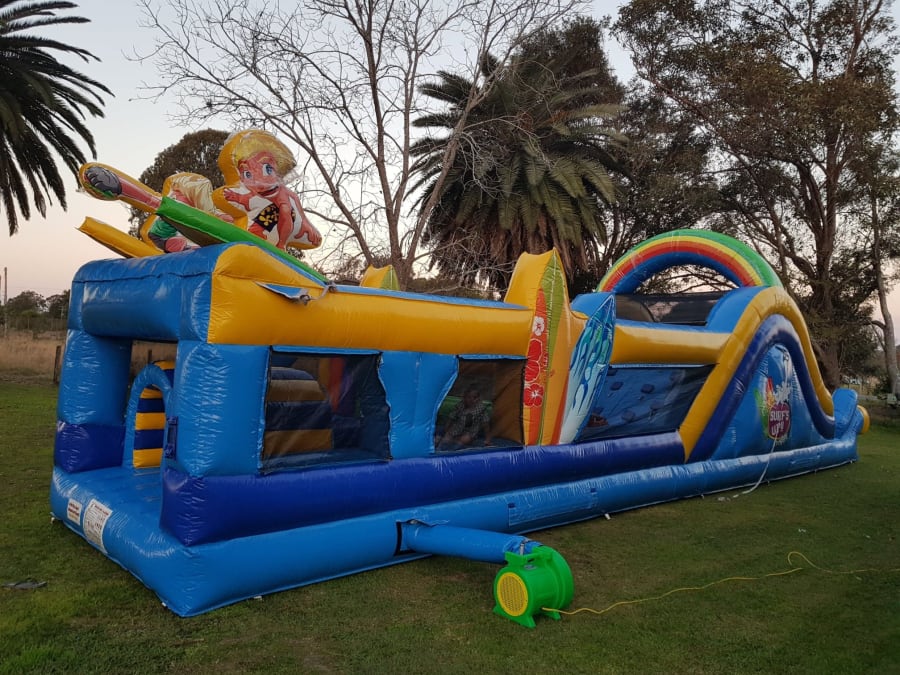 All the fun of an obstacle course with a water slide at the end! Winning!!