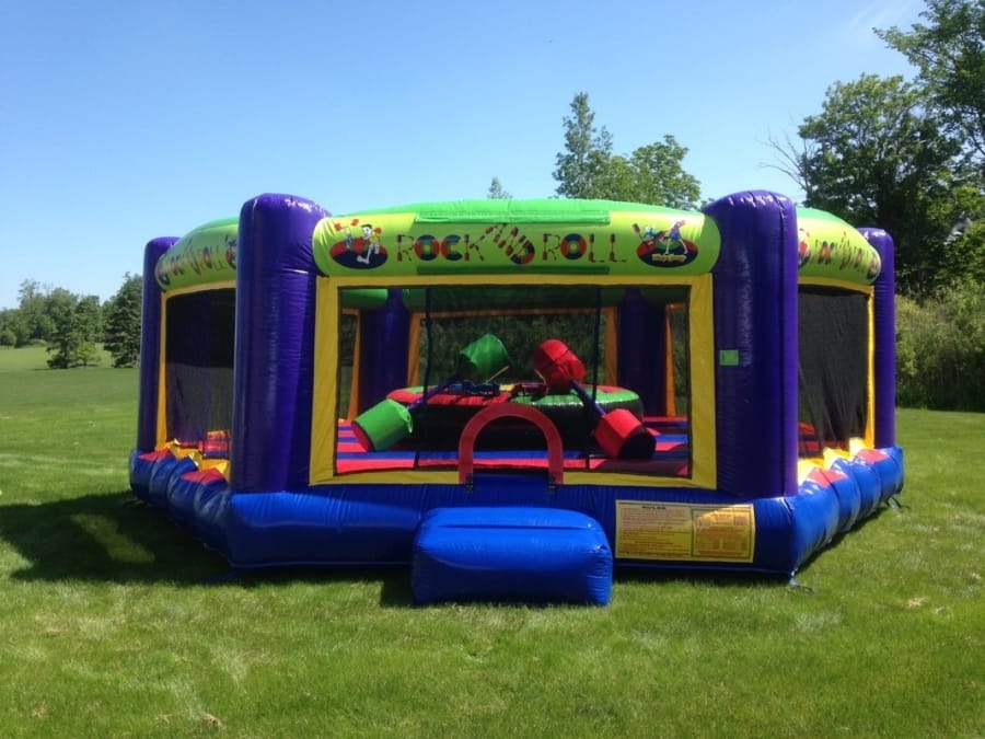 The Rock N Roll inflatable is a hilarious game where 2 Players enter the arena and climb onto the raised pedestal for a jousting match. There is just enough room on the pedestal so that players will have to both rock and roll to maintain their balance. A contestant wins when he or she has defeated the opponent and claims the pedestal.