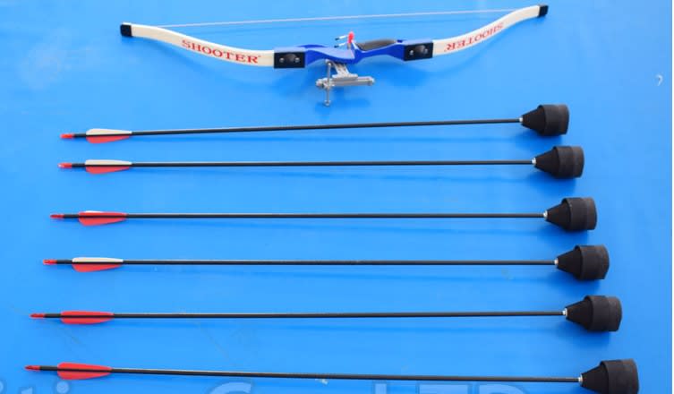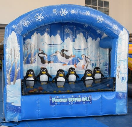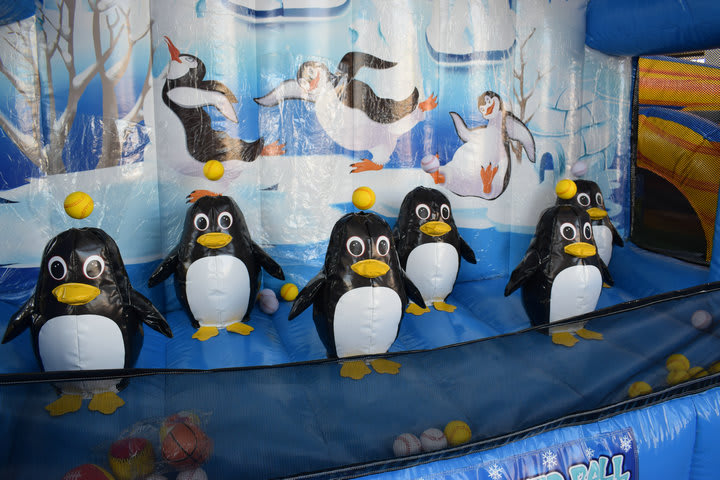 Balls hover over the heads of the penguins and the aim of the game is to shoot them off with the archery set or nerf guns provided.